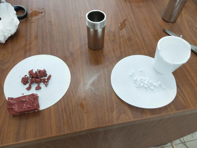 研磨實(shí)例:塑膠跑道和塑料杯的研磨,為滿足研磨在常溫下進(jìn)行,使用液氮預(yù)先脆化后再研磨,將塑膠材料剪碎放入鋼罐中,把專用研磨珠加入鋼罐后把鋼管擰緊,然后把鋼罐放置液氮中泡制幾分鐘,把研磨儀相關(guān)參數(shù)調(diào)整完畢,最后把帶樣品鋼罐放入研磨儀里進(jìn)行研磨。